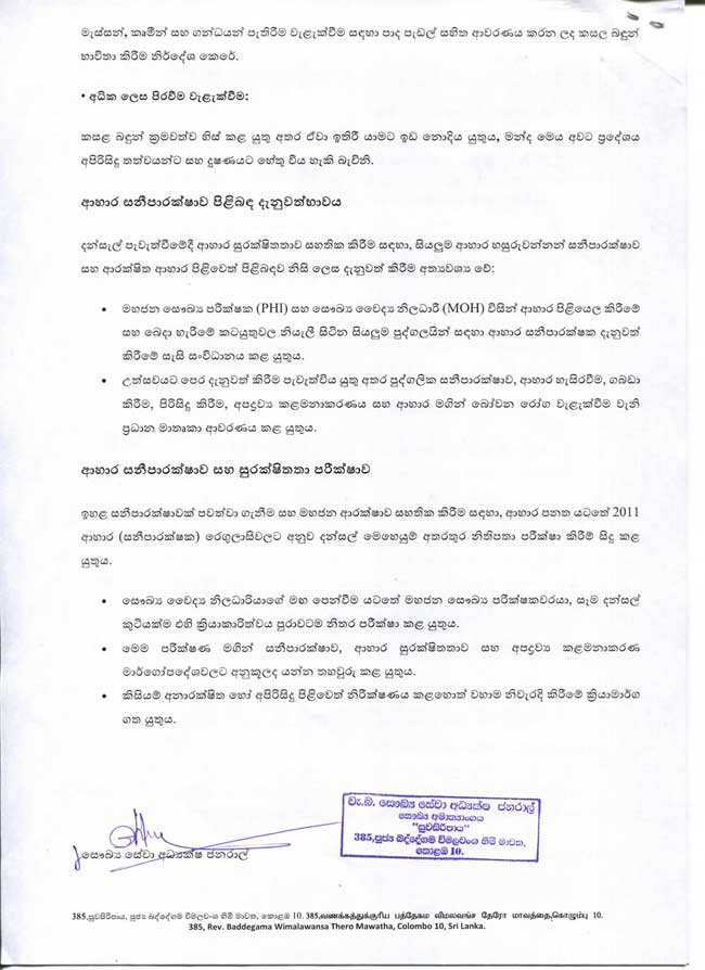 එබැවින් දන්සලක් සංවිධානය කිරීමේදී පහත මාර්ගෝපදේශ දැඩි ලෙස අනුගමනය කළ යුතුය බව සෞඛ්ය හා ජනමාධ්ය අමාත්යාංශය වැඩිදුරටත් දැනුම් දී තිබේ.