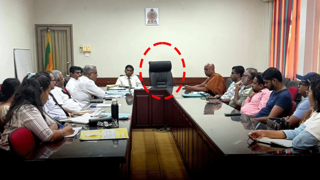 පසුගිය සිකුරාදා දින අප වෙත ලිපියක් යොමු කරමින් පරිසර අමාත්යාංශයේ ලේකම් විසින් ඒ පිළිබඳව සාකච්ඡා කිරීම සඳහා අද දින (28) පරිසර අමාත්යවරයා සහ නියෝජ්ය අමාත්යවරයා සමඟ සාකච්ඡාවකය පැමිණෙන ලෙස අප වෙත දන්වා සිටින ලද අතර පරිසර සංවිධාන සහ ක්රියාකාරීන් ඒ සඳහා පරිසර අමාත්යාංශයට නියමිත වේලාවට යන ලදි. කෙසේ නමුත් පරිසර අමාත්යාංශයේ එවැනි රැස්වීමක් නොපවත්වන බවත්, එම රැස්වීම වනජීවී සංරක්ෂණ දෙපාර්තමේන්තුවේ පවත්වන බැවින් ලේකම් වරයා සහ අතිරේක ලේකම්වරුන් එහි ගිය බවත් අමාත්යවරයා ද එහි පැවැත්වෙන රැස්වීමට පැමිණෙන බවත් සොබාදම් පියසේ ආරක්ෂක නිලධාරීන් අප වෙත දැනුම් දුන් අතර, අප සියළු දෙනා වනජීවී සංරක්ෂණ දෙපාර්තමේන්තු ප්රධාන කාර්යාලය වෙත ගියහ.